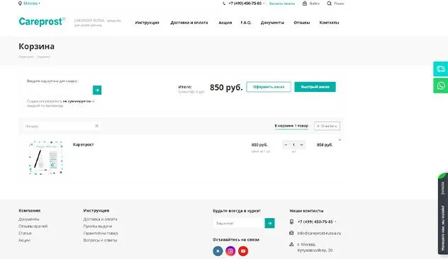 - Выполнили аудит сайта, проанализировали нишу и конкурентов. Учли требования заказчика и приняли решение перенести сайт на cms Bitrix и полностью его переделать. Максимальный упор при переделке сайта был сделан на проработку оформления заказа.