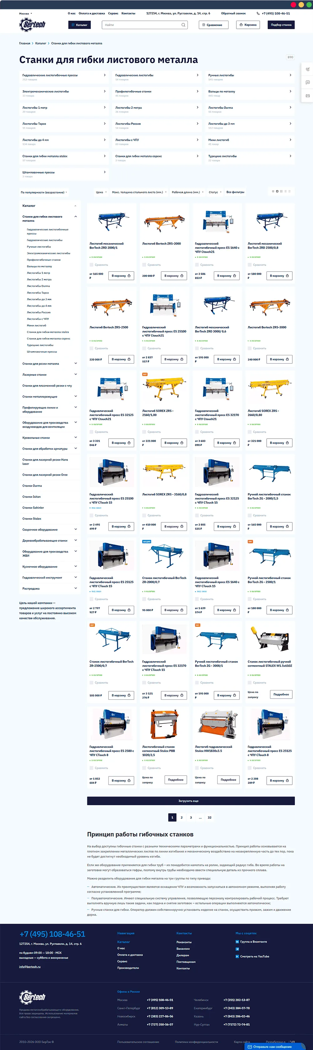 Bertech занимается поставками профессионального оборудования для обработки тонколистового и рулонного металла. Компания работает с производственными и строительными предприятиями. При разработке сайта мы учитывали специфику B2B-аудитории, широкий ассортимент оборудования и необходимость удобной навигации для разных типов клиентов.