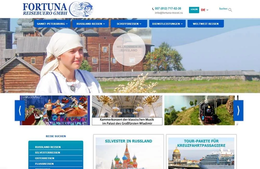 - Программирование: подбор тура, выбор круиза, слайдер на главной, карусель, форм получения заявок, подключение агрегатора отелей и гостиниц "Островок", вывод на печать страницы и многое другое.